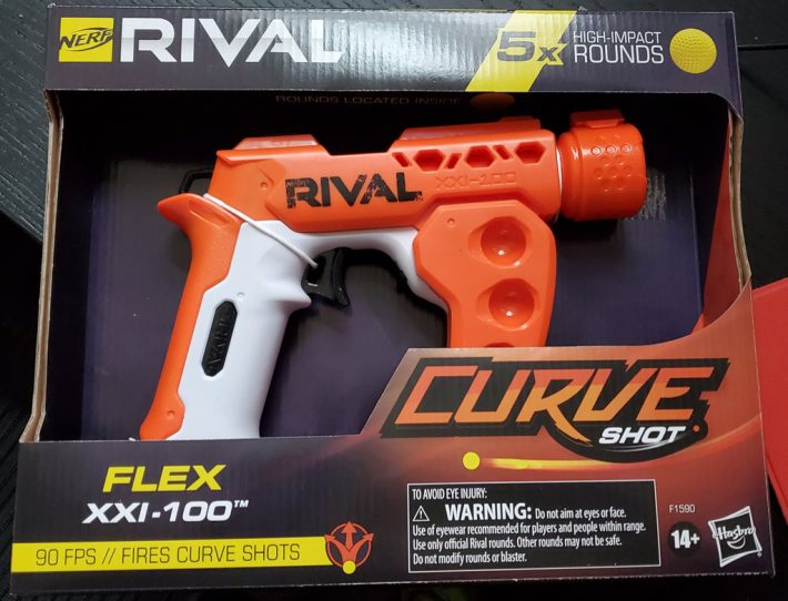 It is beginning to look like that’s not the case. Starting last week, Listings on Wal-Mart went live with inventory for some of the previously listed while undescribed blasters. We managed to get ours in quickly. Presenting the Nerf Rival Curve Shot Flex XXI-100. We’re just gonna say Flex …
